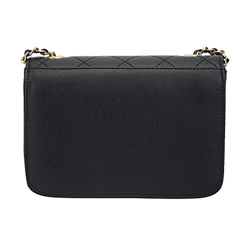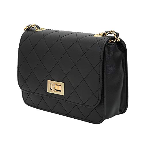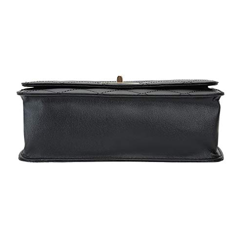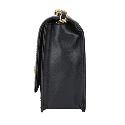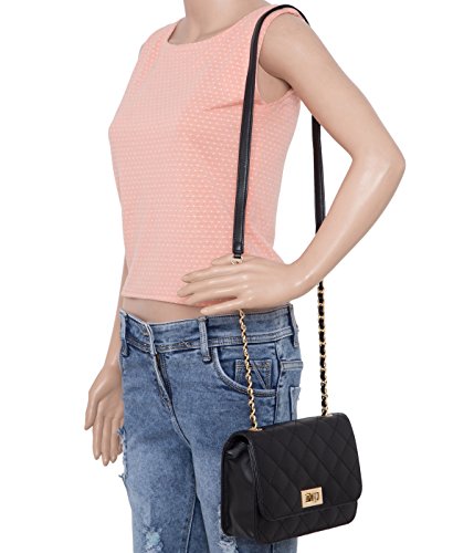 Quilted sling bag with quilted flap with a gold colored PULL ‘n’ TURN twist lock which opens by pulling upwards and then turning, to avoid opening on its own by mistake, for safety. Its belt is a combo of metal chain and PU. This is one of the most stylish and popular designs in sling bags, suitable for both young girls and women. Stylish sling perfect for parties, cocktails and clubbing, and for casual daily use.
