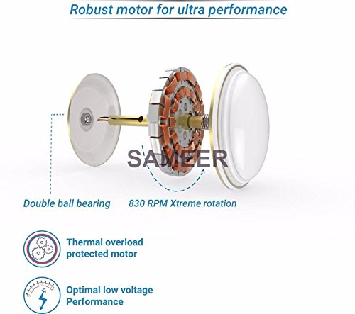 Powerful motor with dynamically balanced blades; Super speed of 850 R.P.M