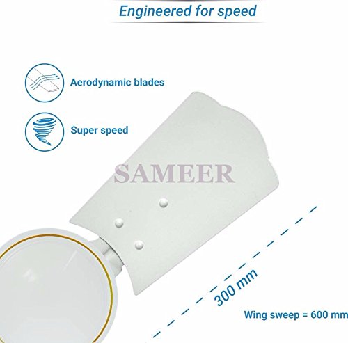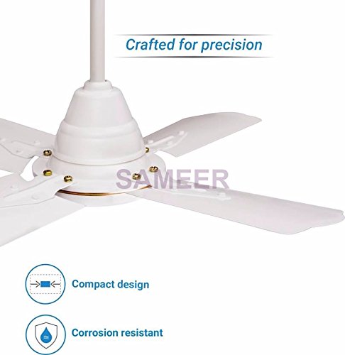 Bring home the Sameer 24 inch ceiling fan. It is a durable and reliable fan. It comes in 24 inch size and gives 600 mm sweep. Enjoy cool and refreshing air with the Sameer ceiling fan, as it has 850 RPM speed and consumes only 50 watts of power. With 4 blades, the ceiling fan gives strong and effective air. Made of quality material, the ceiling fan has stylish design. The compact ceiling fan enhances the beauty of your interiors, thanks to its classy white color.