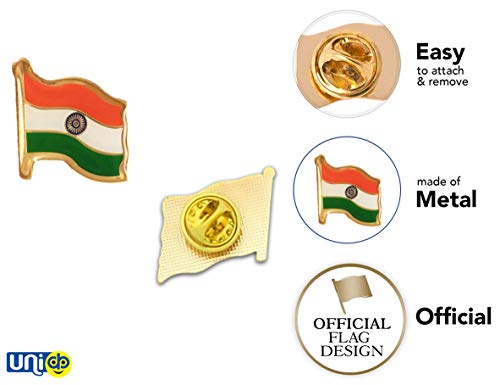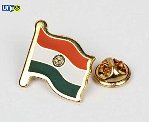 UNIq Indian Flag with Gold finish – Waving National flag badge / brooch / pin / lapel Enamel Made of Metal Souvenir / Jewellery for Hat/T-shirt/Shirt for Men/Women/Kids