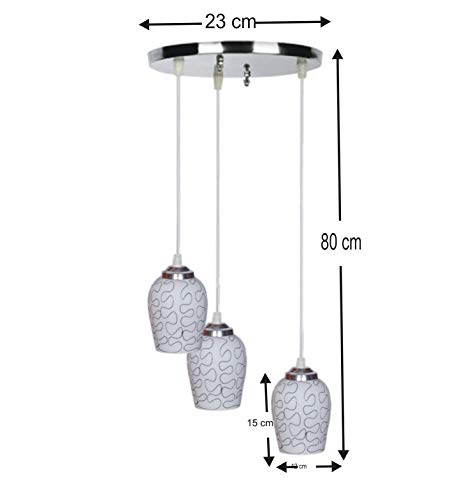 Material- One Metal Plate Ceiling Fixture, Three Decorative Glass Lamp Shade, Three Cord With Holders, Ceiling Fixture And All Other Required Accessory And Two Screw, Bulb Not Includes