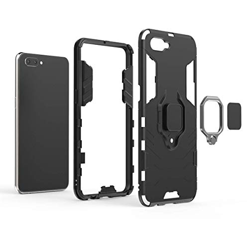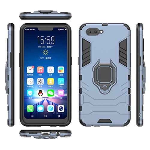 Heartly Graphic Ringstand Series Case - TPU+PC Matte Dual Layer Protective Hybrid Ultra Rugged Bumper Armor Shockproof 360° Kickstand Back Case Cover for Oppo A3s / Oppo A5 (AX5) - Blue