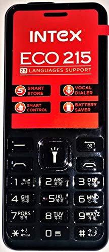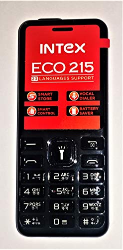 Rear Camera0.3 MP Battery1750 mAh Display1.77 inches General Launch DateOctober 21, 2019 (Official) BrandIntex ModelEco 215 SIM Slot(s)Dual SIM, GSM+GSM Network4G: Not Available, 3G: Not Available, 2G: Available Design Height115.6 mm Compare Size Width48.5 mm Thickness14.5 mm Weight85.7 grams ColoursRed Display Screen Size1.77 inches (4.5 cm) Screen Resolution128 x 160 pixels Pixel Density116 ppi Display TypeTFT Display Colour262k Screen to Body Ratio (calculated)17.59 % Storage Expandable Memoryyes Up to 32 GB Camera MAIN CAMERA Resolution0.3 MP Primary Camera Image Resolution640 x 480 Pixels Camera FeaturesDigital Zoom Battery Capacity1750 mAh TypeLi-ion User Replaceableyes Network & Connectivity Network Support2G SIM 12G Bands:GSM 1800 / 900 MHz GPRS:Available SIM 22G Bands:GSM 1800 / 900 MHz Bluetoothyes Multimedia FM Radioyes Scheduled FM Recording, Wireless FM Loudspeakeryes Audio Jack3.5 mm Video Playeryes Video Formats: 3GP, AVI, MP4 Ring ToneMusic ringtones, Polyphonic ringtones, Vibration Musicyes Music Formats: MP3, WAV Special FeaturesTorch Light, Multi Languages, Mobile Tracker Special Features Gamesyes Browseryes WAP Phone Bookyes Limited Other FacilitiesCalculator, Stopwatch, Calendar, Alarm