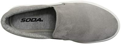 Soda latest collection “Hike” Embossed bumpers at the toe and heel amp up the sporty attitude of a wardrobe-staple slip-on sneaker set on a low platform.