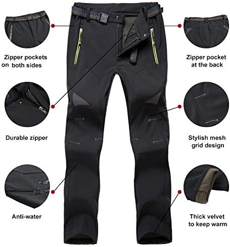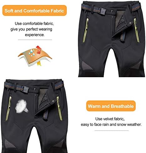 Susclude Men’s Outdoor Hiking Pants Softshell Skiing Pants Fleece Lined Winter Warm Water Resistant Climbing Pants