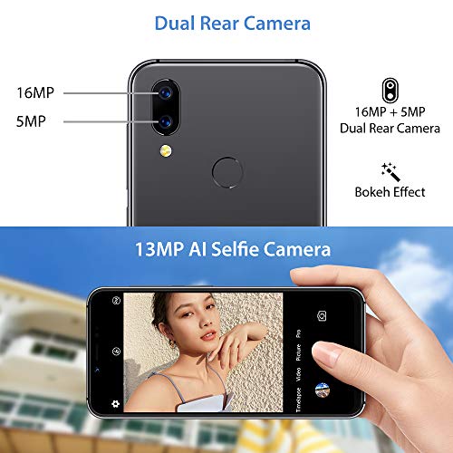 AI Selfie Camera, 16MP + 5MP Dual Rear Camera, 13MP AI Selfie Camera. Reveal Your True Beauty, The 13MP front camera on the UMIDIGI A3S with AI Beauty feature makes your every selfie clear, beautiful and natural.