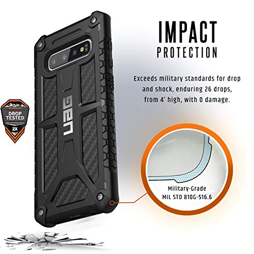 UAG Galaxy S10 Plus case provides wireless compatibility, allowing users to effortlessly access their wireless connections. Our cases feature soft-raised rubber screen-lip and rear skid pads, providing 360-degree protection from impact. Monarch Series meets double the US Military Standard for drop & shock protection.