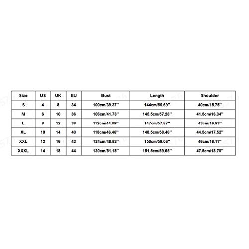 ☞Size:XXL —–US:12 —–UK:16 —–EU:42 —–Bust:124cm/48.82” —–Waist:106cm/41.73” —–Hip:118cm/46.46” —–Sleeve:64cm/25.20” —–Length:150cm/59.06” —–Shoulder:46cm/18.11”