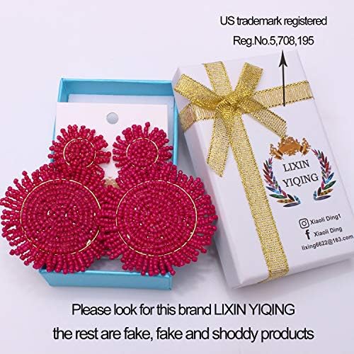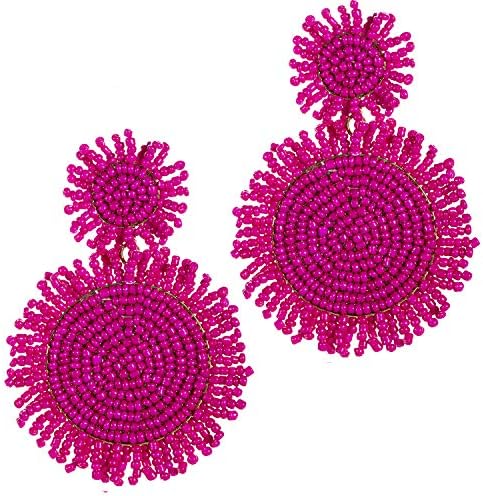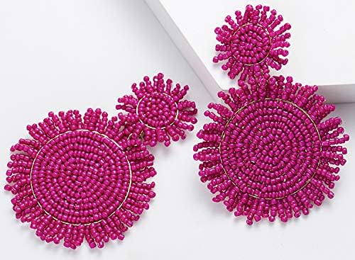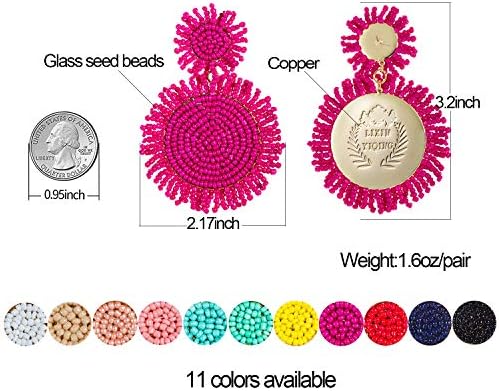 Suit for any occasion,your makeup and this big large statement fashion bohemian earrings will make you stand out on any occasion. There are twelve colors to choose ,effortlessly add elegance to any outfit with this fashion beaded statement whimsical earrings.