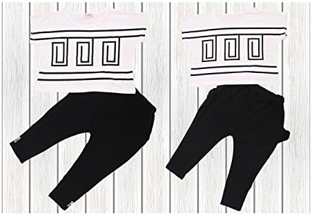 Two-piece set featuring short-sleeve fashion T-shirt, and black 3/4-length Harem pants