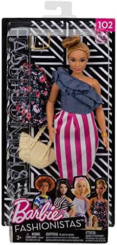 Every Barbie Fashionistas doll has her own look and style -from casually cool to super sporty, all fashions are inspired by the latest trends. And an extra outfit included with Barbie doll means twice the possibilities for storytelling and styling fun. With added diversity and more variety in styles, fashions, shoes and accessories, there are infinitely more ways to spark imaginations and play out stories -because you can be anything with Barbie! Includes Barbie Fashionistas doll wearing fashion and shoes, one additional outfit (a dress and/or top and bottom), one purse and two accessories. Each sold separately, subject to availability. Dolls cannot stand alone. Clothing is designed to mix and match with dolls of the same body type; select pieces can be shared across the line. Flat shoes fit dolls with articulated ankles or flat feet. Colors and decorations may vary.