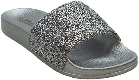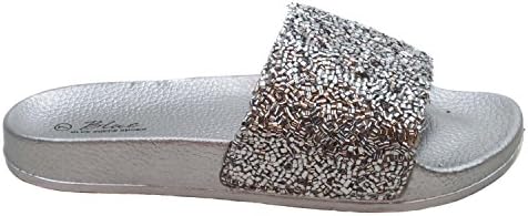 Available in Silver, Rose Gold, Black FASHIONABLE STYLE: These slippers are trendily adorned with the simple design Glitter Rhinestone, which is full of vitality and fashion. It is suitable for the trendy lady even at home, making you the center of attention anywhere. Match a lot dress up. Beautiful Sliders With Wide Foot Strap Diamante Detailing THE MOST TRENDING STYLE!: Slides are so in right now! They’re perfect for lounging, but the laid back look is trending! The molded footbed is super comfortable for walking around. Whether if you’re wearing shorts and a t-shirt or that cute sundress, these sandals are sure to get you noticed! A must have Blue Suede Shoes Product! Blue Suede Shoes NY. Based in the heart of the Fashion District of NYC. We offer the latest trends, excellence, confidence & imagination to fulfil your everyday footwear needs. Qualities which identify our Brand. With prices affordable for Women, Men & Kids. SATISFACTION GUARANTEED: You can return the shoes using the amazon guidelines during the first 30 days after you receive the product Sandals slip on, sandals slip on for women, sandals slip on comfortable, slip on Glitter, sandals for women, funny, sandals comfort, slippers, slippers for women, fashion slippers, fashionable style, trendy shoes, summer sandals, Glitter Rhinestone Sandals These stylish sandals offers comfort and durability with a quality construction. They are available in a variety of colors to better suit your mood.