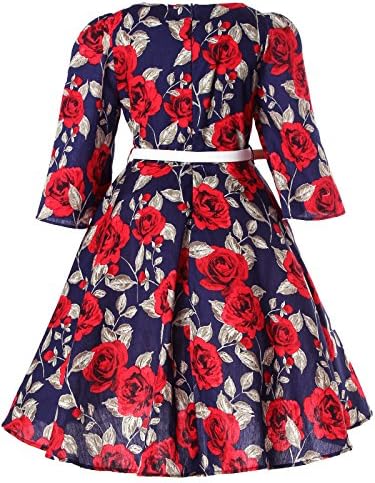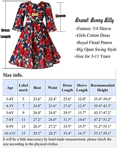 The girls dress from BONNY BILLY featuring a round neck, 3/4 sleeve,cap sleeve,sleeveless floral cotton print, a pleated skirt and full lining. It can be worn for school, daily play, wedding and evening party.