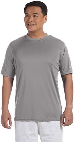100% polyester jersey interlock; moisture-wicking; rapid dry interlock fabric; 50+ UPF rating, excellent UV protection; smooth self-fabric collar; coverseamed armholes and neck for durability; reflective ?C? logo on left sleeve and Champion script at center back neck ; double-needle sleeve and bottom hems