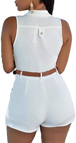 Enggras Women’s High Neck Buttons Down Summer Beach Party Club Short Jumpsuit and Rompers with Belt Pockets