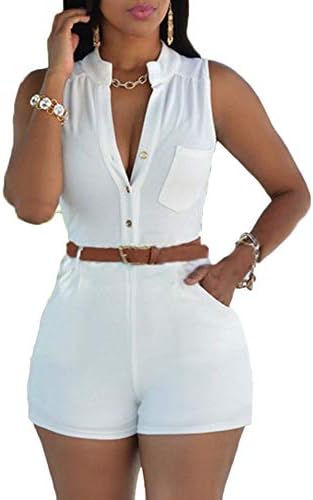 Womens solid short jumpsuit has a slim fit with matching belt. It is perfect if you want to keep up with the latest trends without sacrificing comfort.