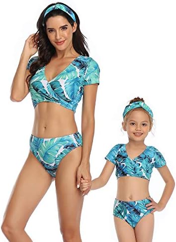 Special & More Charming – Our beachwear for women and baby girl is the latest fashion this year, short sleeve top, front breast criss-cross, high waist triangle bottom and short, separates design, sexy but adorable.