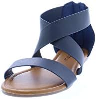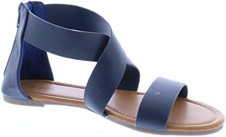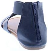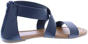 Stylish soft faux leather strappy open-toed flat sandals for women with back zipper for easy slip in and out wear.