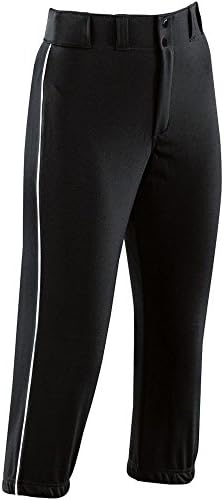 14oz 100% Polyester double-knit, Contrast side seam piping, Two-snap closure with nylon zipper, Five pro-style belt loops, 20 1/2" inseam on women’s medium, 15" inseam on girls’ medium, Double- welt set-in back pockets, Elastic waistband, Elastic cuffs.