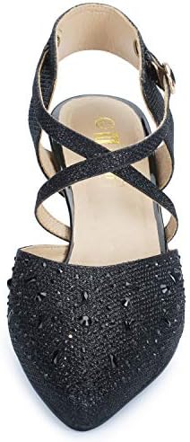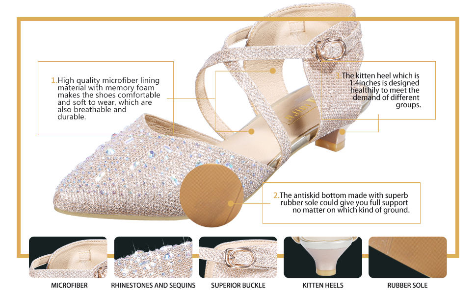 UNIQUE AND COVETED DESGIN: These pumps shoes with cross bandage and pointed toe can make your foot look slimmer. Wonderful sequins decorated could make comfort and fashion go hand in hand. They could ensure that everyone will be looking at your feet when you are in these shoes.