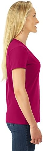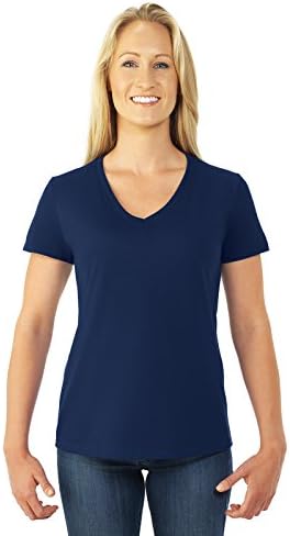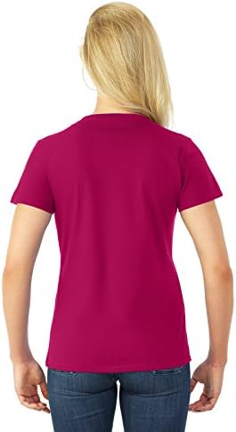 100% cotton preshrunk jersey; high-density fabric for exceptional print clarity; 1×1 rib set-in collar with mitered V-neck construction; should-to-shoulder taping; sideseamed & slightly contoured for a flattering fit; double-needle coverstitching on sleeve and bottom hem; Athletic Heather is 90% cotton, 10% polyester; classic ladies’ styling with feminine neckline, sleeves and fit