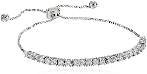 Landau Jewelry Deluxe Women’s Tennis Bracelet – Adjustable Pull Chain – Elegant Design – Metallic Finish and Stones – Round CZ 4 Prongs