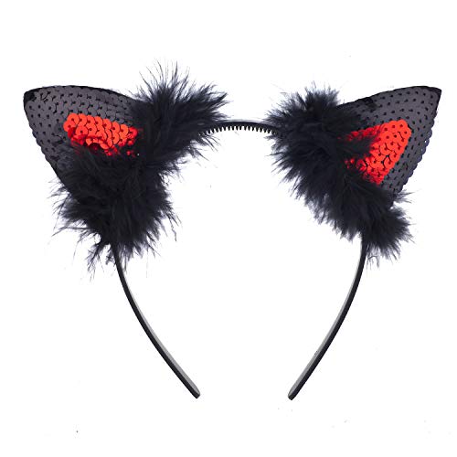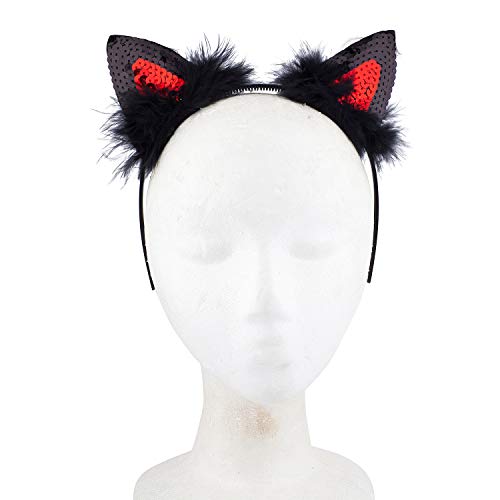 Lux Accessories Black Red Sequined Cat Ears Furry Cute Fun Fashion Headband