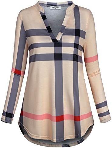 🎄🎁Rolled Up Sleeve Tunic /Split V Neck /Unique Vibrant Plaid Printed Detail/Casual and Simple Style /No Wrinkles/Pull on closure