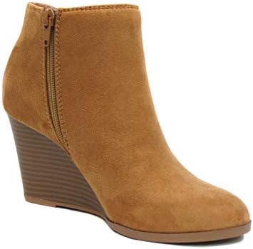 Soda latest collection “Ability” An almond toe shaped wedge bootie with imitation stacked wood heel ,and a side cut opening with functional zipper on one side for maximum fit and comfort