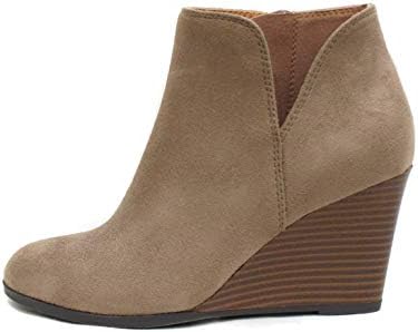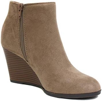 Soda latest collection “Ability” An almond toe shaped wedge bootie with imitation stacked wood heel ,and a side cut opening with functional zipper on one side for maximum fit and comfort