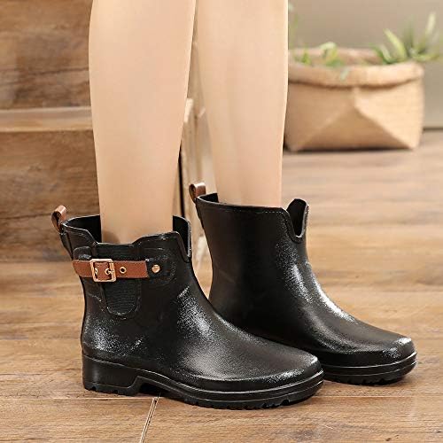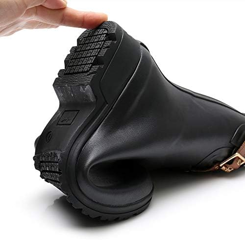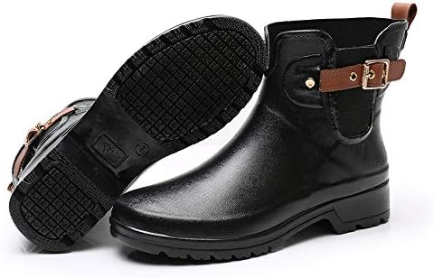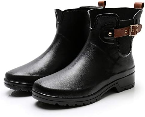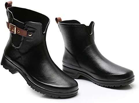 【Chelsea Booties Design】 This women’s Rain Boots are Chelsea Booties Design, Conformed to the Latest Trends. The Elastic Upper and Adjustable Buckle Straps assured an Easy Slip on and off by increasing Open Circumference of the booties.