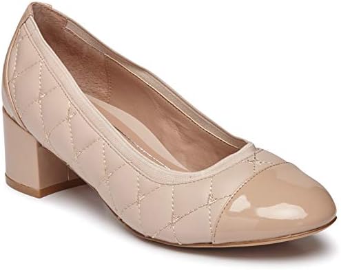 An unexpected edge reveals itself in the quilted upper of this classy, cap-toe pump. With a wrapped heel for style that makes sense.