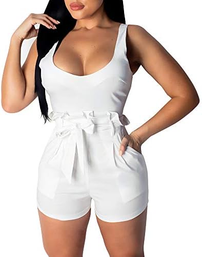 Yumobuti Women’s High Neck Buttons Down Summer Beach Party Club Short Jumpsuit and Rompers with Belt Pockets